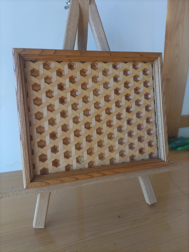 細かい目を持った綺麗な組子細工 壁掛けアート 籠目