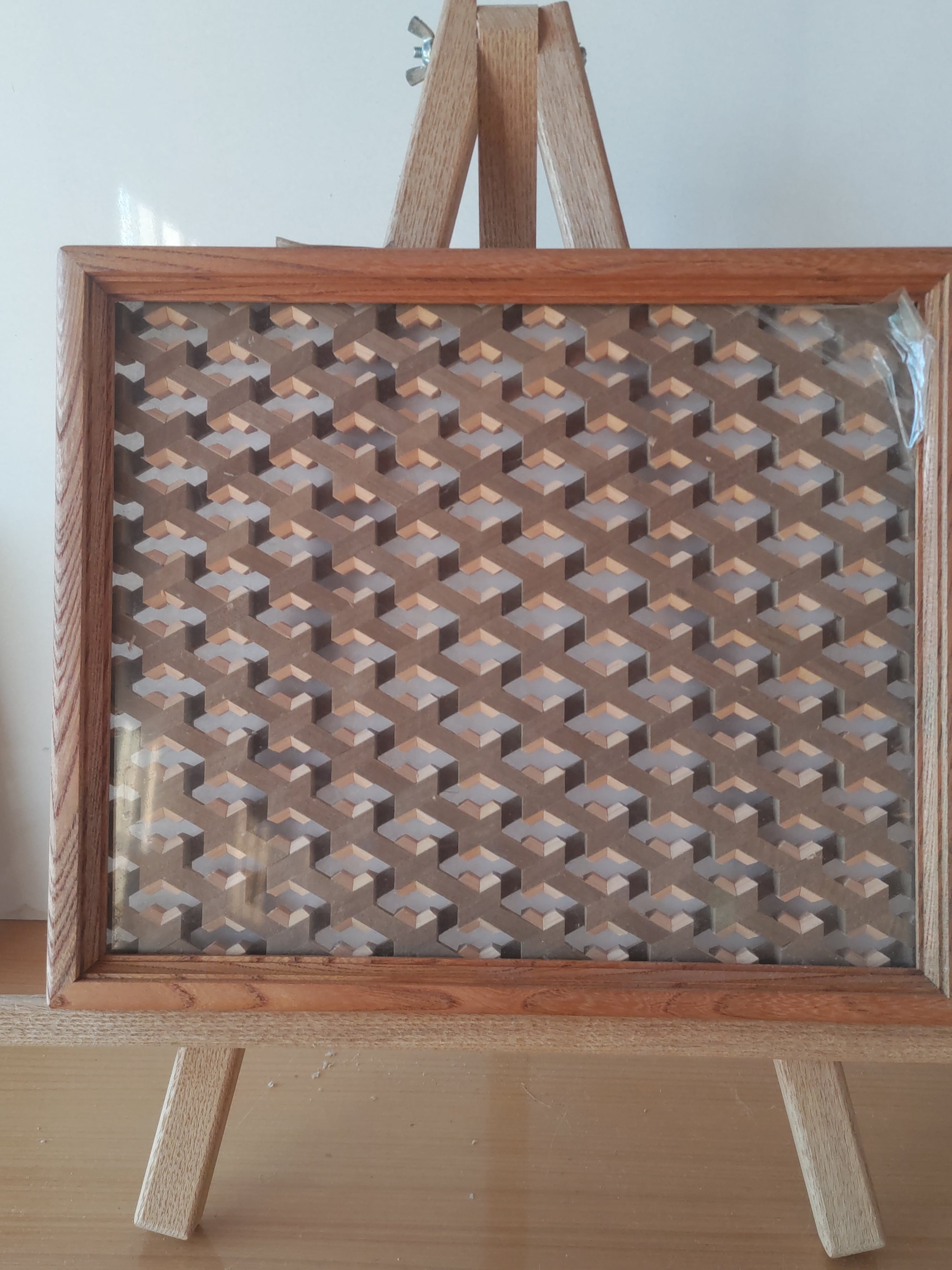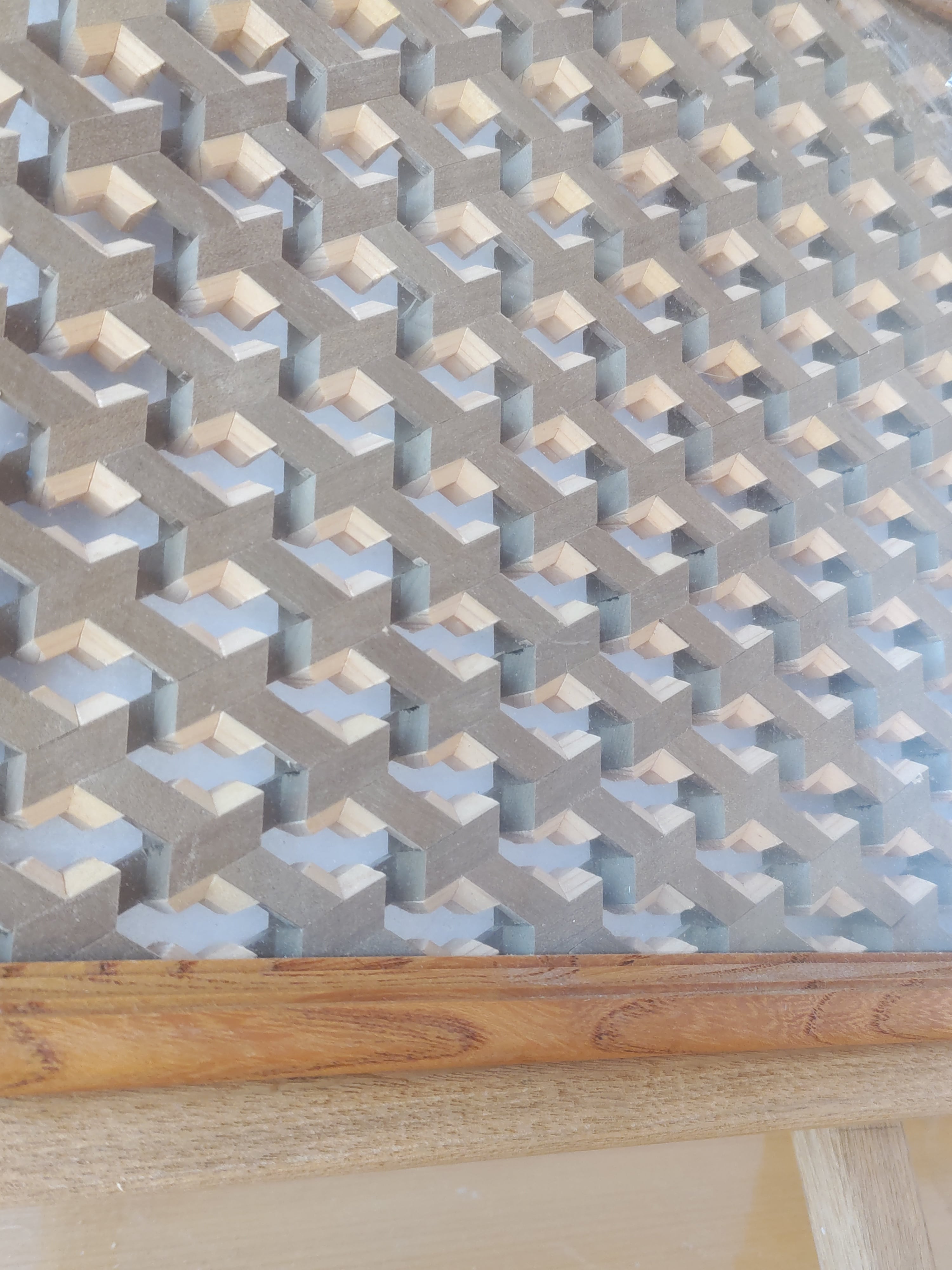 これは、面取目潰本捻組籠目組子細工の制作を途中で止めた瞬間に生まれた発想によるものです。