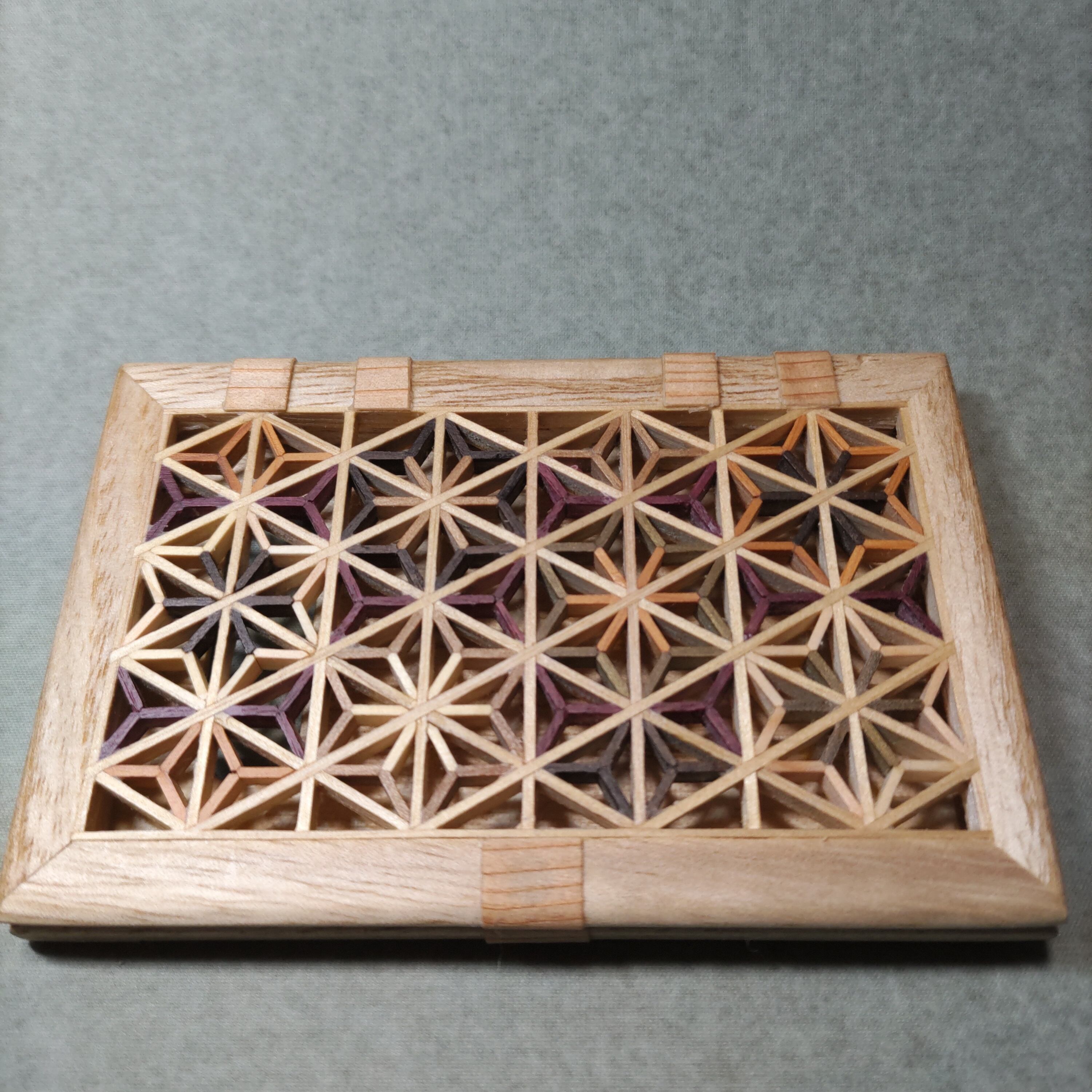 無垢材を使用した組子細工ですので、写真と実物の色、風合いなどが異なる場合がございます。